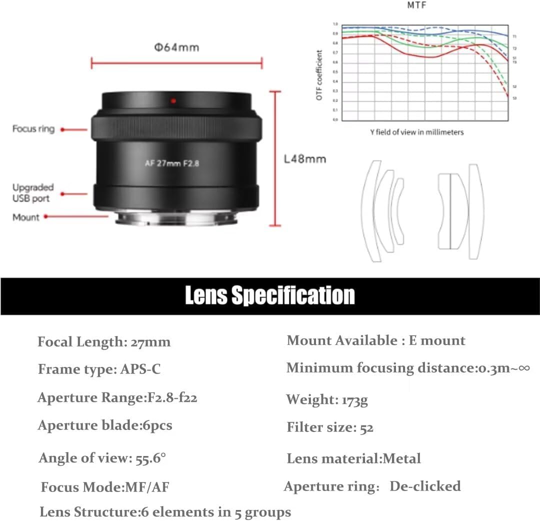 Equipped with STM (Stepping Motor) autofocus technology, this lens ensures quick and precise focusing, allowing you to capture fast-moving subjects with ease. Whether you’re shooting stills or videos, the 7artisans 27mm lens delivers smooth and silent autofocus performance for a seamless shooting experience.